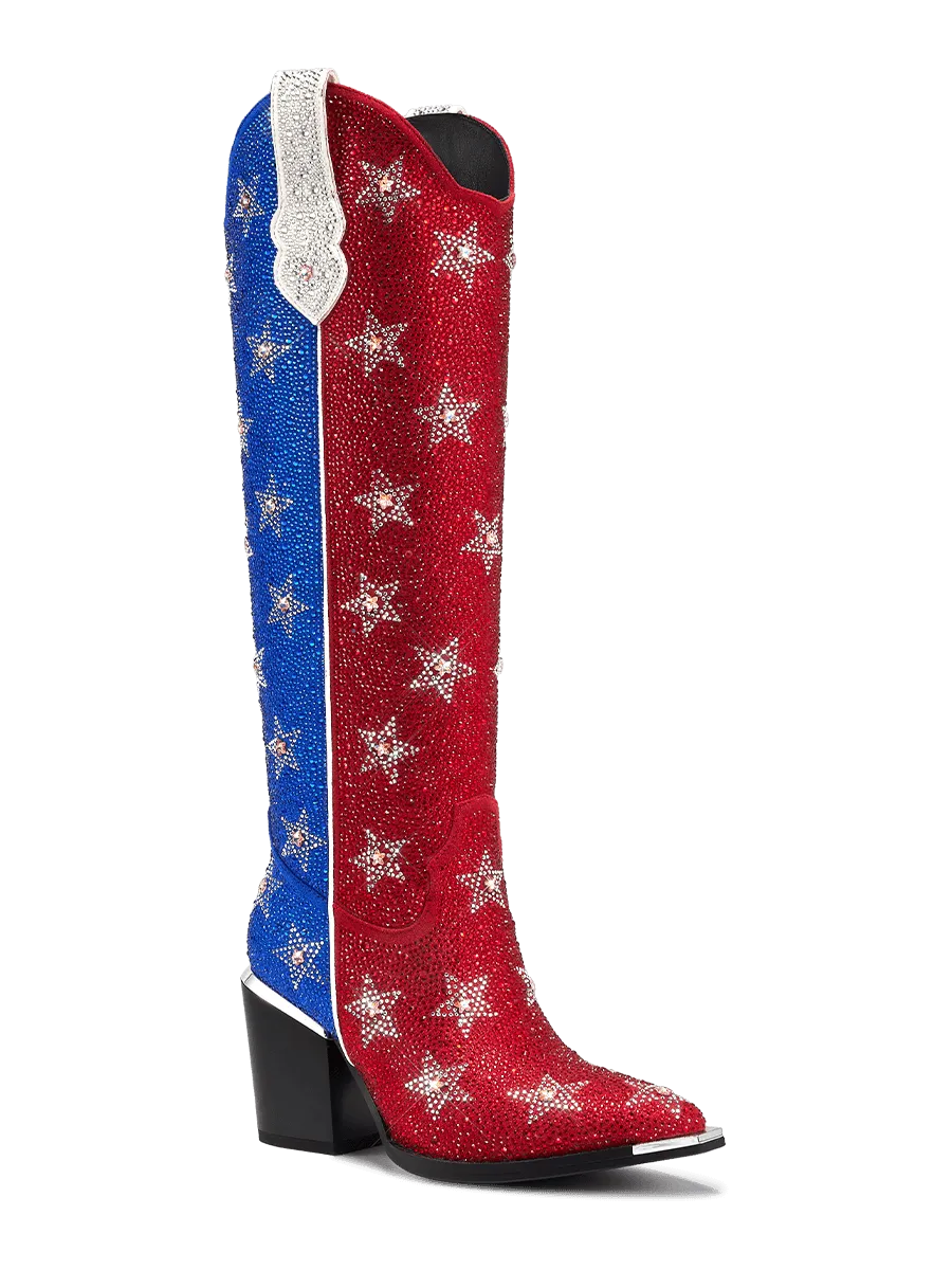 Star Rhinestone Cowboy Boots – Red, Blue & Bold Western Glam (Style JX155-1