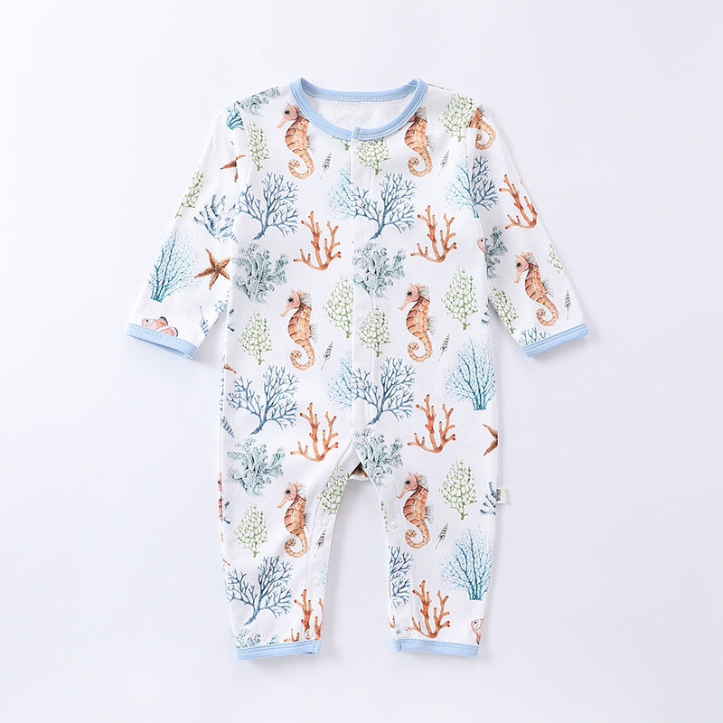 Autumn and Spring Arrival Baby Unisex Animals Pattern Long Sleeves Crew Neck Single Breasted Rompers